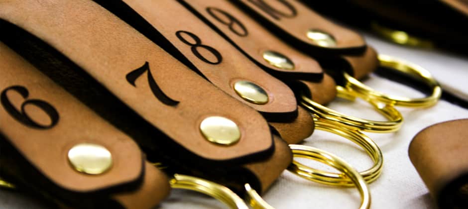Für Hotels, Gästehäuser und Ferienwohnungen fertigen wir hochwertige Schlüsselanhänger aus Leder an. Mit individueller Logogravur und Zimmernummer lasergravieren wir auch außergewöhnliche Wünsche in kleinen und mittleren Stückzahlen nach Kundenwunsch. Bereits ab 10 Stück erstellen wir Ihnen per mail ein indivdiuelles Angebot. Hierfür senden Sie uns gerne eine Anfrage.