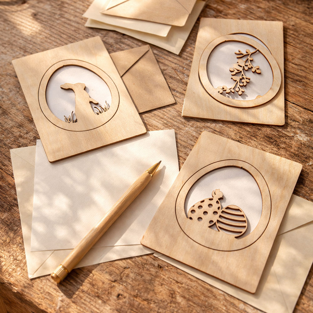 Holzkarten-Set – Hochwertige Grußkarten aus Holz mit Laserschnitt & Lasergravur